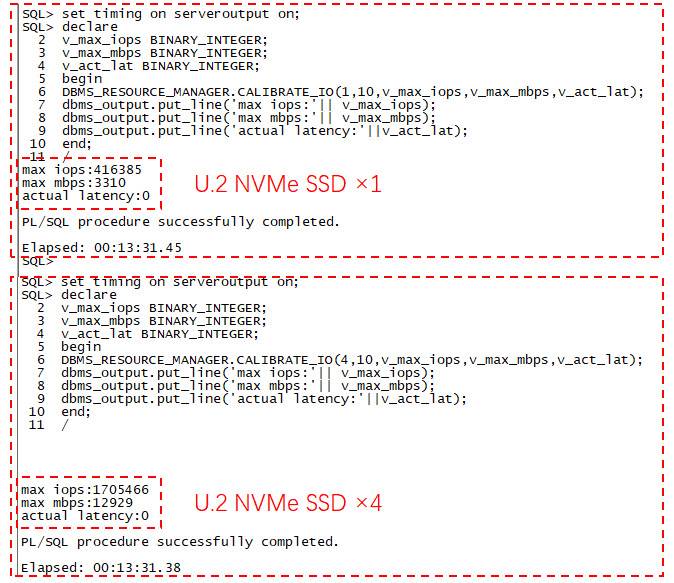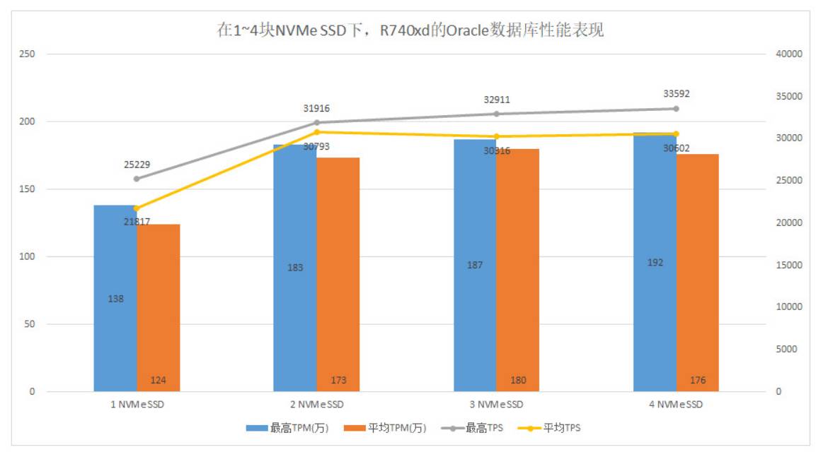 這是PCIe擴(kuò)展卡的核心——基于PLX的PCIe Switch芯片,采用PCIe 3.0 x16接口,分為AB兩個(gè)端口,每個(gè)端口是PCIe x8規(guī)格,支持兩塊x4的U.2 NVMe SSD。因此一塊卡可以全速連接4塊U.2 SSD。 Dell PowerEdge R740xd服務(wù)器中的U.2 NVMe SSD連接示意圖,最大可支持12個(gè)U.2 SSD,或者最大24塊SATA/SAS SSD或者HDD,亦或兩者按比例混插。 再看看R740xd中的PCIe通道分配情況: 根據(jù)企事錄手里的這臺(tái)戴爾 R740xd服務(wù)器的配置,我們畫(huà)了如上的示意圖。 CPU1/2分別提供不同的PCIe擴(kuò)展槽(其余的PCIe通道被PCH、板載網(wǎng)卡等周邊設(shè)備所使用): 紅色框內(nèi)的是將處理器原生的16X PCIe橋接成4個(gè)x4的U.2通道,一共可以支持12個(gè)U.2設(shè)備,圖中的4塊U.2是我們經(jīng)過(guò)測(cè)試后優(yōu)化布置的4塊800GB的U.2 NVMe SSD,灰色的是可以擴(kuò)展的空位; 綠色框是一塊PCIe x8的H740p SAS RAID卡,通過(guò)磁盤(pán)倉(cāng)背板的SAS Switch提供24個(gè)SAS/SATA盤(pán)位支持; 橘色框是新一代的25GbE網(wǎng)卡,同樣也是PCIe x8的設(shè)備; 藍(lán)色框是戴爾14G服務(wù)器中所提供的一個(gè)全新設(shè)計(jì)的BOSS卡,在一個(gè)PCIe板卡上提供2個(gè)M.2(SATA) SSD,支持RAID 1,用于提供高性能、低故障率的系統(tǒng)盤(pán)服務(wù)。 由此可見(jiàn),盡管雙路平臺(tái)R740xd有96條PCIe通道,但仍有不夠用的感覺(jué),除了BOSS卡(x4)、H740p SAS RAID卡(x8)、25GbE網(wǎng)卡(x8)、PCH和板載網(wǎng)卡(10GbE和1GbE)之后,也僅給高速的NVMe SSD留下了48條PCIe通道可供使用,恰好滿(mǎn)足12個(gè)NVMe SSD所需要的PCIe通道數(shù)。(選擇PCIe卡橋接U.2相比板載U.2接口,靈活性更好。在服務(wù)器上將更多的PCIe總線(xiàn)留給擴(kuò)展性更好的PCIe插槽,會(huì)方便用戶(hù)的使用。) 在企事錄實(shí)驗(yàn)室中的這臺(tái) Dell PowerEdge R740xd服務(wù)器配備了4塊三星PM1725系列的U.2 NVMe SSD: Dell PowerEdge R740xd服務(wù)器中所使用的NVMe SSD,800GB容量,屬于三星PM1725系列:最大3.1GB/s帶寬,4k隨機(jī)讀寫(xiě)IOPS分別為75萬(wàn)和12萬(wàn)。 突圍200萬(wàn)TPM魔咒 數(shù)據(jù)庫(kù)類(lèi)應(yīng)用是目前最能充分發(fā)揮NVMe SSD性能優(yōu)勢(shì)的企業(yè)應(yīng)用場(chǎng)景之一,尤其是關(guān)鍵業(yè)務(wù)數(shù)據(jù)庫(kù)。因?yàn)镹VMe SSD具有很好的單位IOPS成本,又具有數(shù)據(jù)庫(kù)類(lèi)應(yīng)用所需要高性能和低延遲。同時(shí)考慮到R740xd服務(wù)器配備了兩顆英特爾Xeon Gold 6130處理器和384GB內(nèi)存,具有很好的性能,所以企事錄實(shí)驗(yàn)室首先部署了一個(gè)單實(shí)例的Oracle數(shù)據(jù)庫(kù)環(huán)境,以此來(lái)評(píng)估這臺(tái)PowerEdge R740xd的性能表現(xiàn)。 在構(gòu)建好Oracle 12c數(shù)據(jù)庫(kù)之后,考慮到R740xd中配備了384GB的內(nèi)存,而4塊NVMe SSD的容量之和為3.2TB,為避免大內(nèi)存容量導(dǎo)致的數(shù)據(jù)庫(kù)I/O性能虛高,企事錄在創(chuàng)建數(shù)據(jù)庫(kù)過(guò)程中稍微限制了Oracle所能使用的內(nèi)存容量,即將SGA的內(nèi)存容量限制為64GB,同時(shí)寫(xiě)入200GB的測(cè)試數(shù)據(jù)。穩(wěn)定運(yùn)行1小時(shí)之后,獲得Oracle數(shù)據(jù)庫(kù)性能: 在4塊NVMe SSD下,配備Xeon Gold 6130處理器的R740xd服務(wù)器獲得了172.5萬(wàn)的平均TPM,峰值TPM超過(guò)186萬(wàn),接近200萬(wàn)TPM;平均TPS接近3萬(wàn)左右,峰值TPS超過(guò)3.2萬(wàn),且平均響應(yīng)時(shí)間僅為3ms。 單純就性能而言,平均3萬(wàn)TPS的Oracle數(shù)據(jù)庫(kù)性能已經(jīng)接近了某些全閃存陣列的性能水平。但結(jié)合企事錄實(shí)驗(yàn)室以往的測(cè)試經(jīng)驗(yàn)來(lái)看,計(jì)算能力應(yīng)該達(dá)到了瓶頸,畢竟Oracle數(shù)據(jù)庫(kù)也是非常消耗計(jì)算能力的應(yīng)用,從上圖可以看到,R740xd的CPU占用率已經(jīng)超過(guò)了80%。 盡管黃金版的6130處理器在至強(qiáng)SP家族中只處于中上游水平,但其結(jié)合NVMe SSD構(gòu)建的單實(shí)例Oracle數(shù)據(jù)庫(kù)性能已經(jīng)接近上一代頂級(jí)至強(qiáng)E5-2699 v4處理器的性能。200萬(wàn)TPM對(duì)于雙路服務(wù)器而言,似乎是一個(gè)不過(guò)逾越的難關(guān),但在新一代Xeon處理器中卻有望破除。 上圖是在Oracle數(shù)據(jù)庫(kù)測(cè)試過(guò)程中,從(Oracle Linux 7.4)操作系統(tǒng)上獲得的截圖,雖然有些核心的利用率為50%左右,但有些核心已經(jīng)高達(dá)90%,從最上面的CPU History曲線(xiàn)來(lái)看,已經(jīng)有部分核心的利用率接近100%,這應(yīng)該是Oracle數(shù)據(jù)庫(kù)性能無(wú)法進(jìn)一步提升的瓶頸所在。 為了證實(shí)4塊NVMe SSD并未達(dá)到性能瓶頸,企事錄實(shí)驗(yàn)室利用Oracle數(shù)據(jù)庫(kù)本身的命令行腳本測(cè)試了在1塊SSD和4塊SSD情況下,Oracle數(shù)據(jù)庫(kù)隨機(jī)讀取的性能情況: 圖上為1塊NVMe SSD情況下,Oracle數(shù)據(jù)庫(kù)的隨機(jī)讀取性能,接近42萬(wàn)IOPS,帶寬在3.3GB/s左右,這基本是單個(gè)U.2版本PM1725的極限性能;圖下則為4塊NVMe SSD情況下,Oracle數(shù)據(jù)庫(kù)隨機(jī)讀取性能高達(dá)170萬(wàn)IOPS,帶寬約13GB/s。簡(jiǎn)單推算,隨著NVMe SSD的增加,其IOPS性能是線(xiàn)性增長(zhǎng)的。 這一測(cè)試結(jié)果基本可以確定并非NVMe SSD出現(xiàn)瓶頸,接下來(lái),企事錄實(shí)驗(yàn)室分別針對(duì)1、2、3
